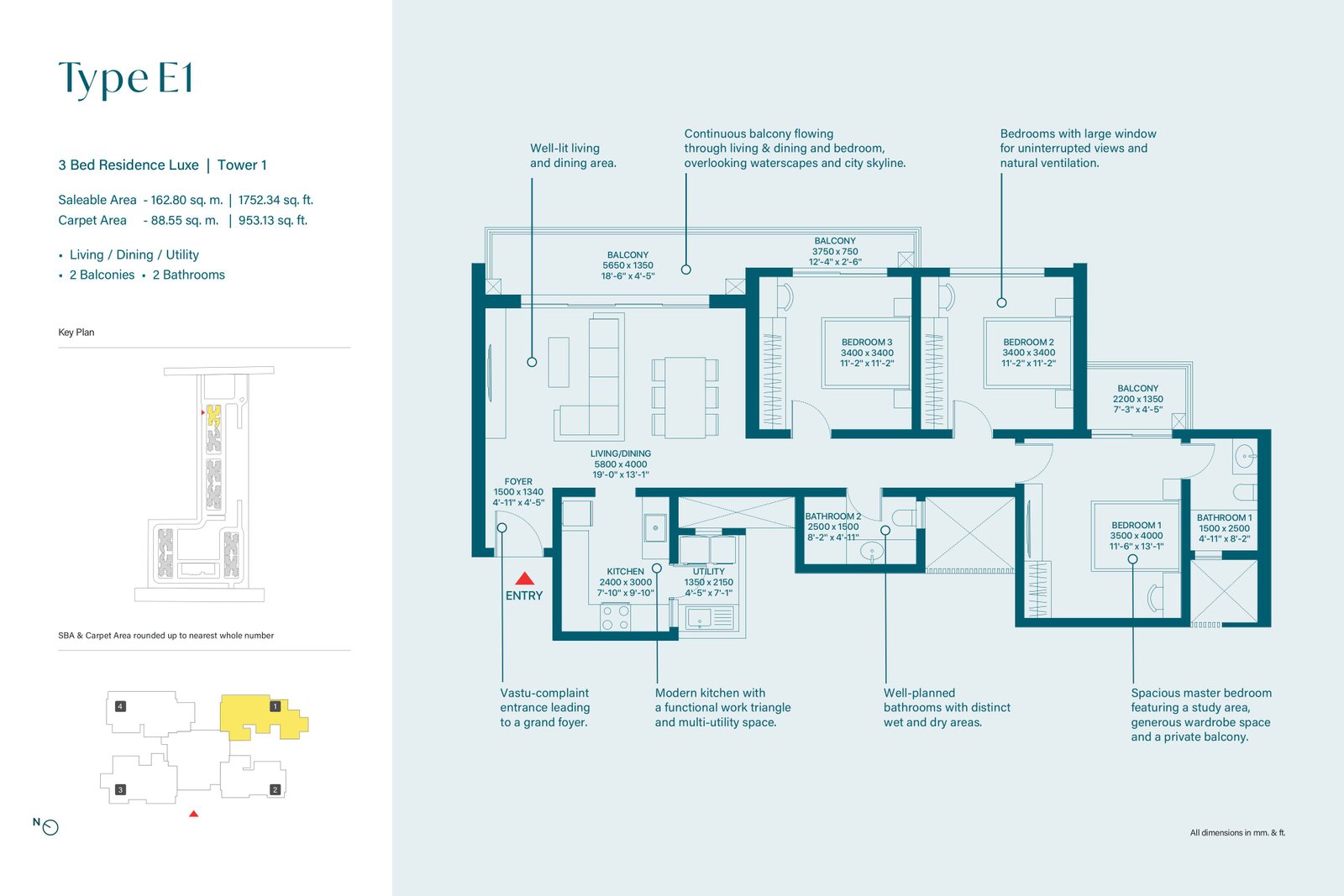 The project offers well-designed 3 BHK + 3T and 3 BHK + Store configurations, suitable for modern families looking for spacious and comfortable living spaces.